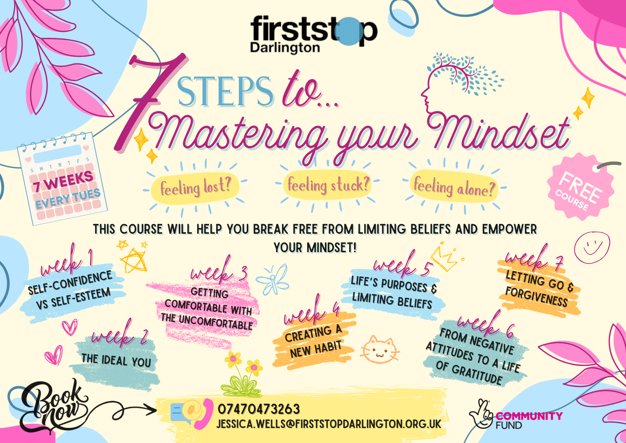The wonderful team at First Stop Darlington have introduced their next 7 week course starting in November. It is primarily for people who are limiting their lives due to their anxieties, depression and significant lack of self-esteem and self-confidence.