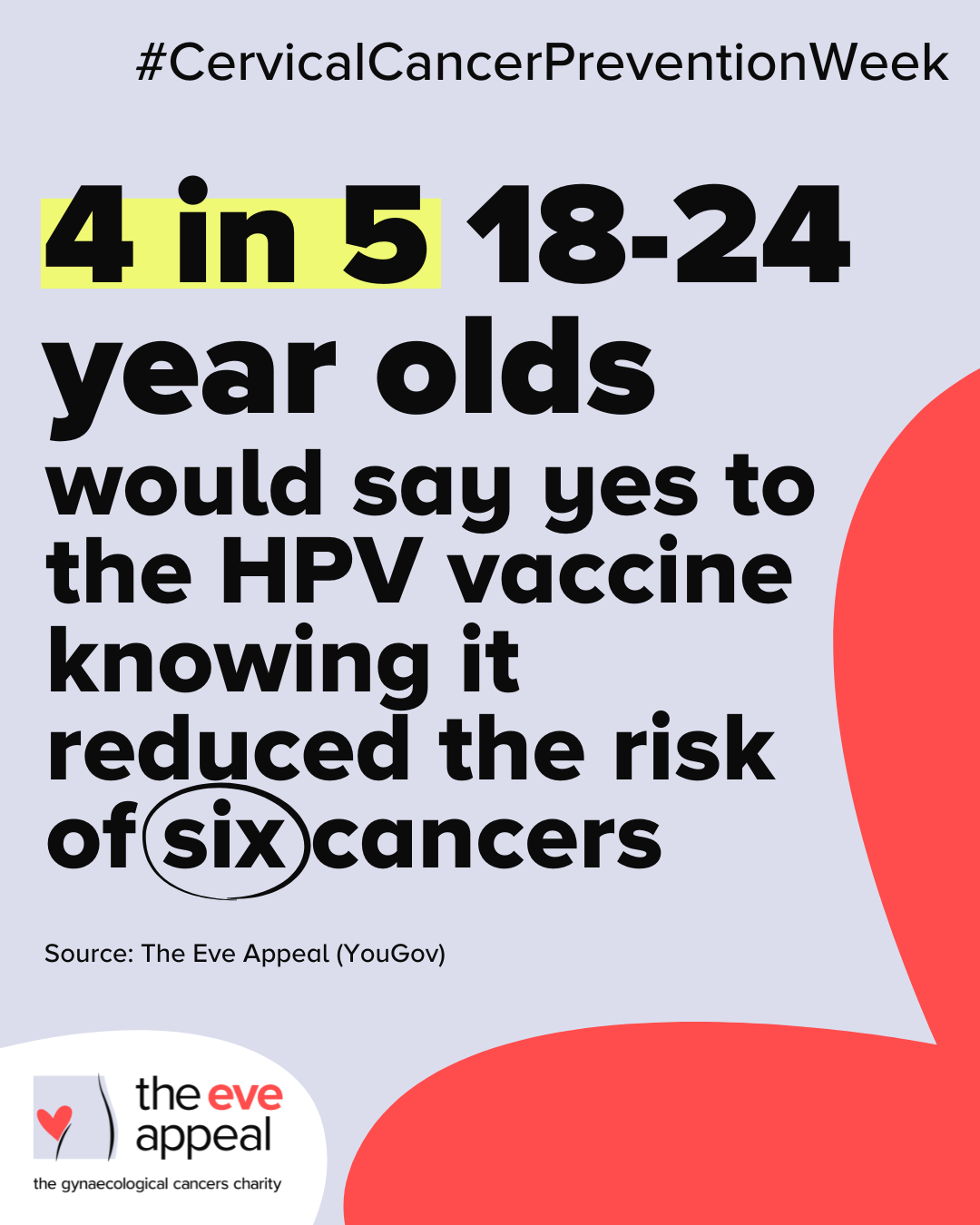 A survey (YouGov) found that 4 in 5 18-24 year olds (who are eligible for the HPV vaccination as part of the catch-up programme if they missed it at school) would be willing to get a vaccination to help reduce the risk of six types of cancer.
