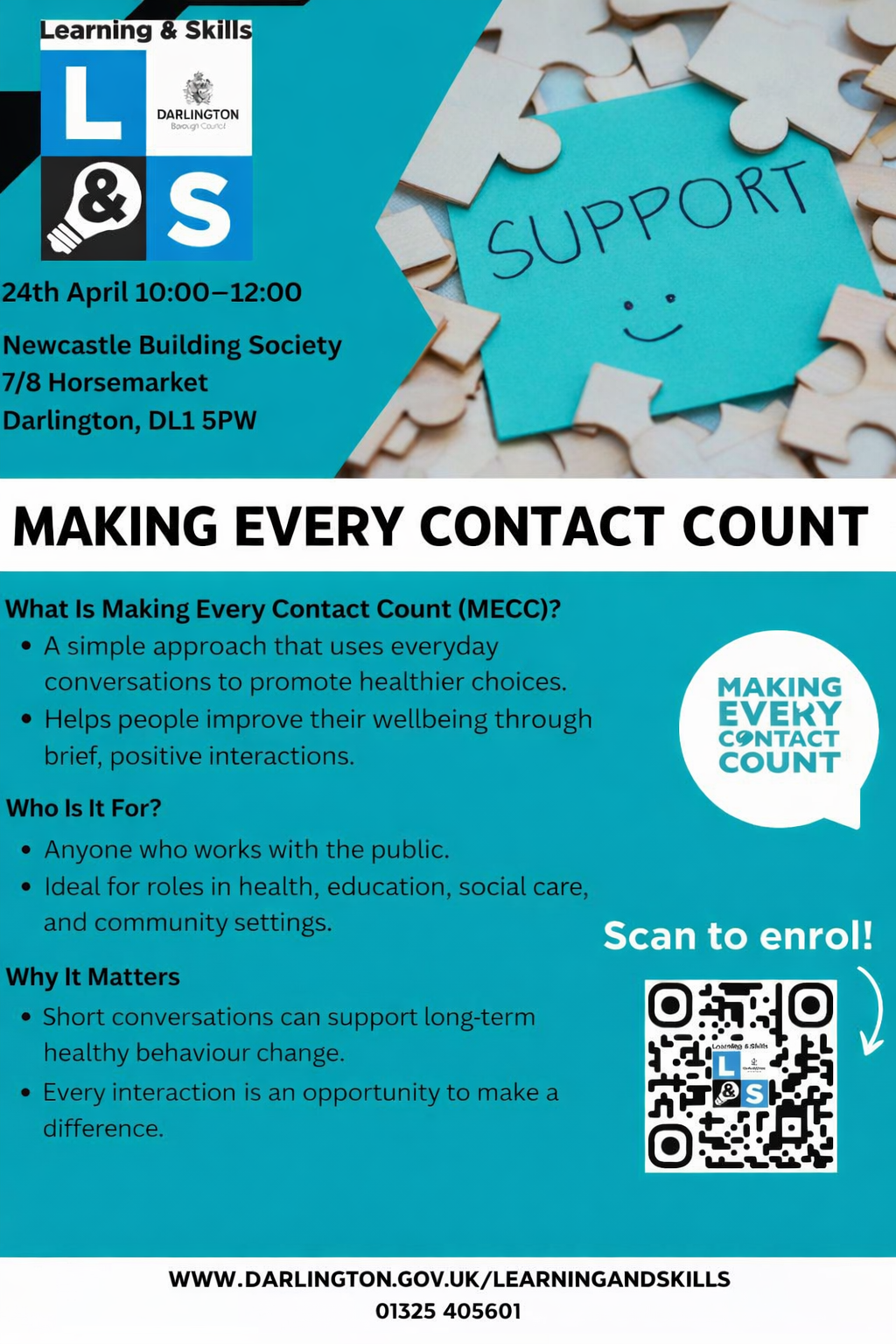 For further information contact www.darlington.gov.uk/learningandskills or call 01325 405601.
