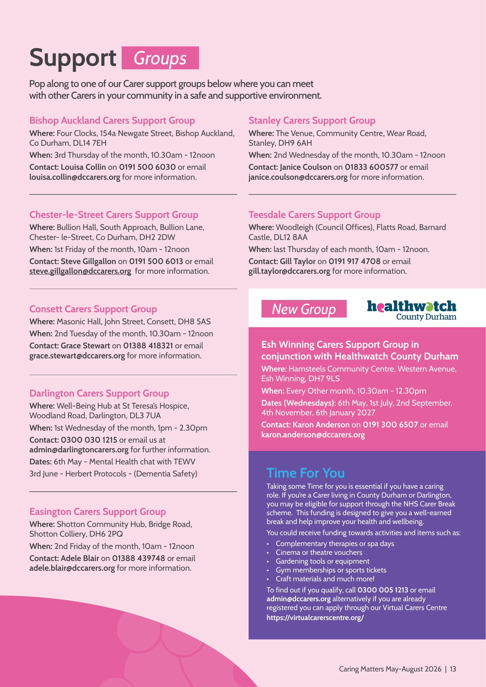 Durham County Carers Support - Local Support Groups